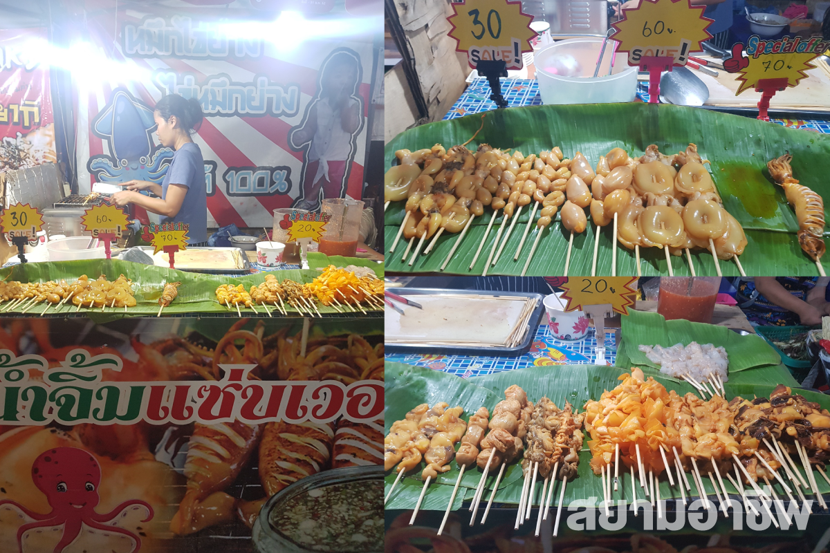 อาหารแนวปิ้งย่างสุดฮิต สุดสตรีท ถูกใจทั้งลูกค้าไทยและเทศ ไปตลาดไหนๆก็ต้องเจอ ซึ่งหมึกที่นิยมนำมาย่างขายก็จะมี “หมึกกล้วย” ที่สีจะออกม่วงๆ และยาวเหมือนกล้วย เมื่อย่างแล้วจะได้ความกรอบ, “หมึกกระดอง” ตัวกลมๆสีขาว เนื้อหนา ซึ่งเป็นหมึกที่เหมาะกับการปิ้งย่างที่สุด และสุดท้าย “หมึกหอม” คล้ายหมึกกล้วย แต่ขาวกว่า หอมและนุ่มกว่าหมึกกล้วย นอกจากประเภทของหมึกแล้ว ทั้งส่วนของหนวดและไข่ ก็นำมาย่างขายได้ และเป็นที่นิยมของลูกค้าด้วย ซึ่งไม่ใช่แค่หมึกย่าง ที่คุณต้องใส่ใจถึงความอร่อย ความสะอาด ไร้กลิ่นคาว แต่ยังรวมถึงน้ำจิ้มรสเด็ด ที่คุณต้องทำให้ลูกค้าติดใจด้วย